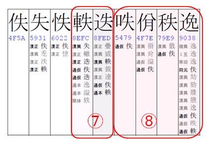 MS明朝にグリフが無く,その字が漢語大字典未掲載字である場合は,Batang,MingLiU,SimSunの順にグリフがあるフォントを用いる。